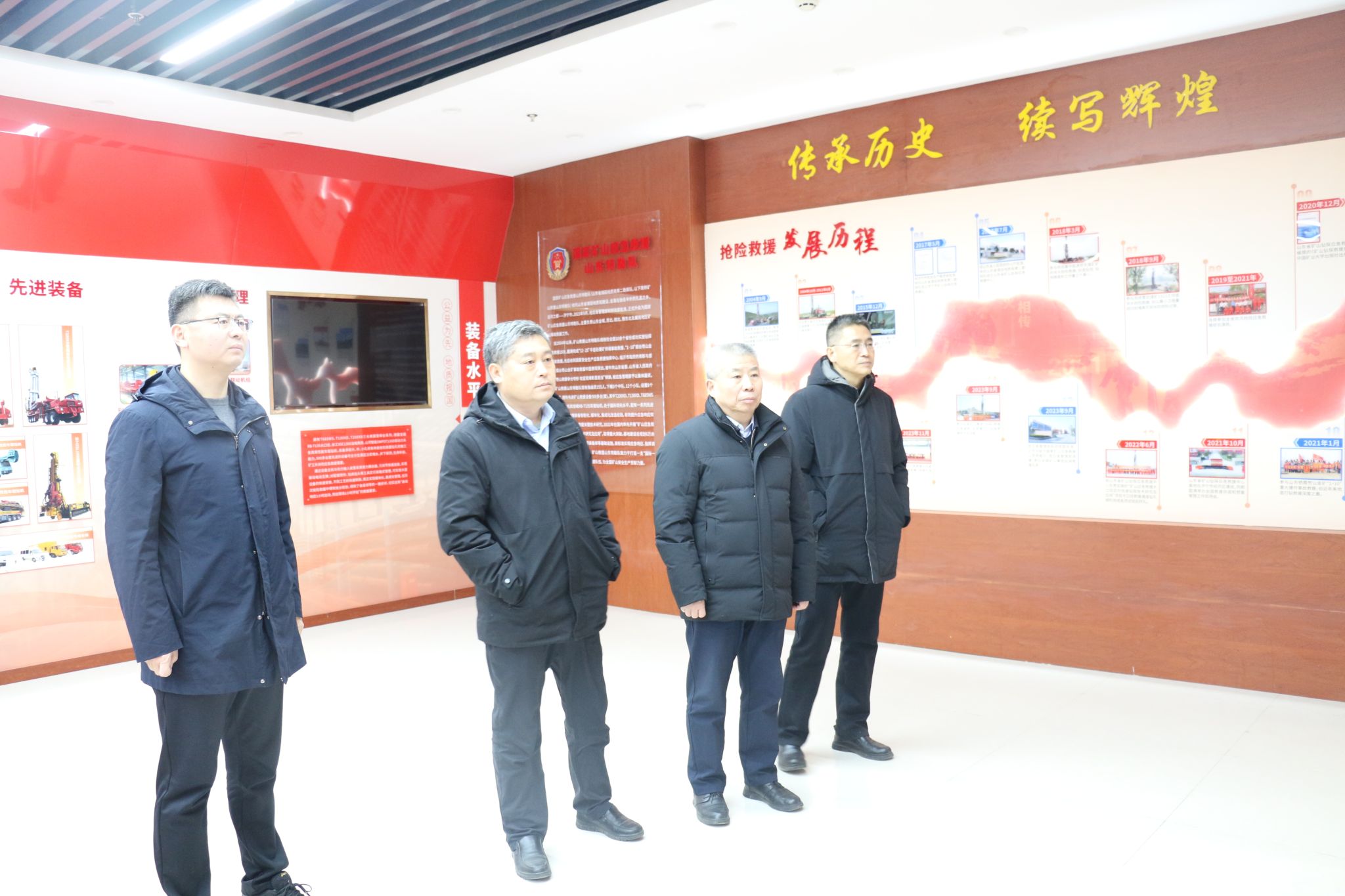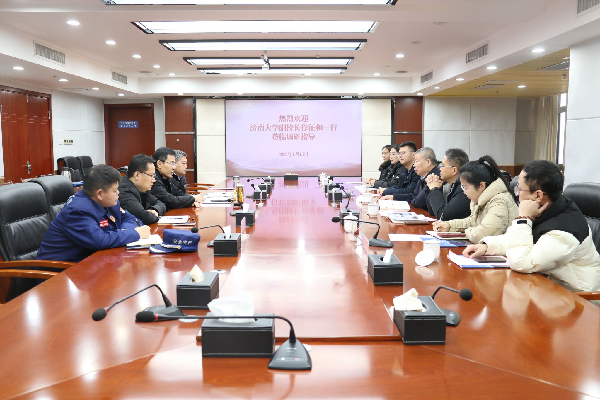 在调研中,徐征和一行参观了应急救援中心基地及抢险救援专业装备,实地查看了山东省地勘基金项目大口径救援通道实验井,听取了关于应急救援中心信息化建设情况的讲解,深入了解了山东省煤田地质局二队在矿山抢险救援方面取得的成果。徐征和简要介绍了学校的发展历史、学科建设、科技创新、人才培养等方面情况,双方围绕进一步深化对口专业人才培养、毕业生就业招聘、联合开展课题研究、科技创新团队孵化平台搭建、学生实习实训基地共建、信息化建设等方面进行深入交流和探讨,并达成进一步合作共识。