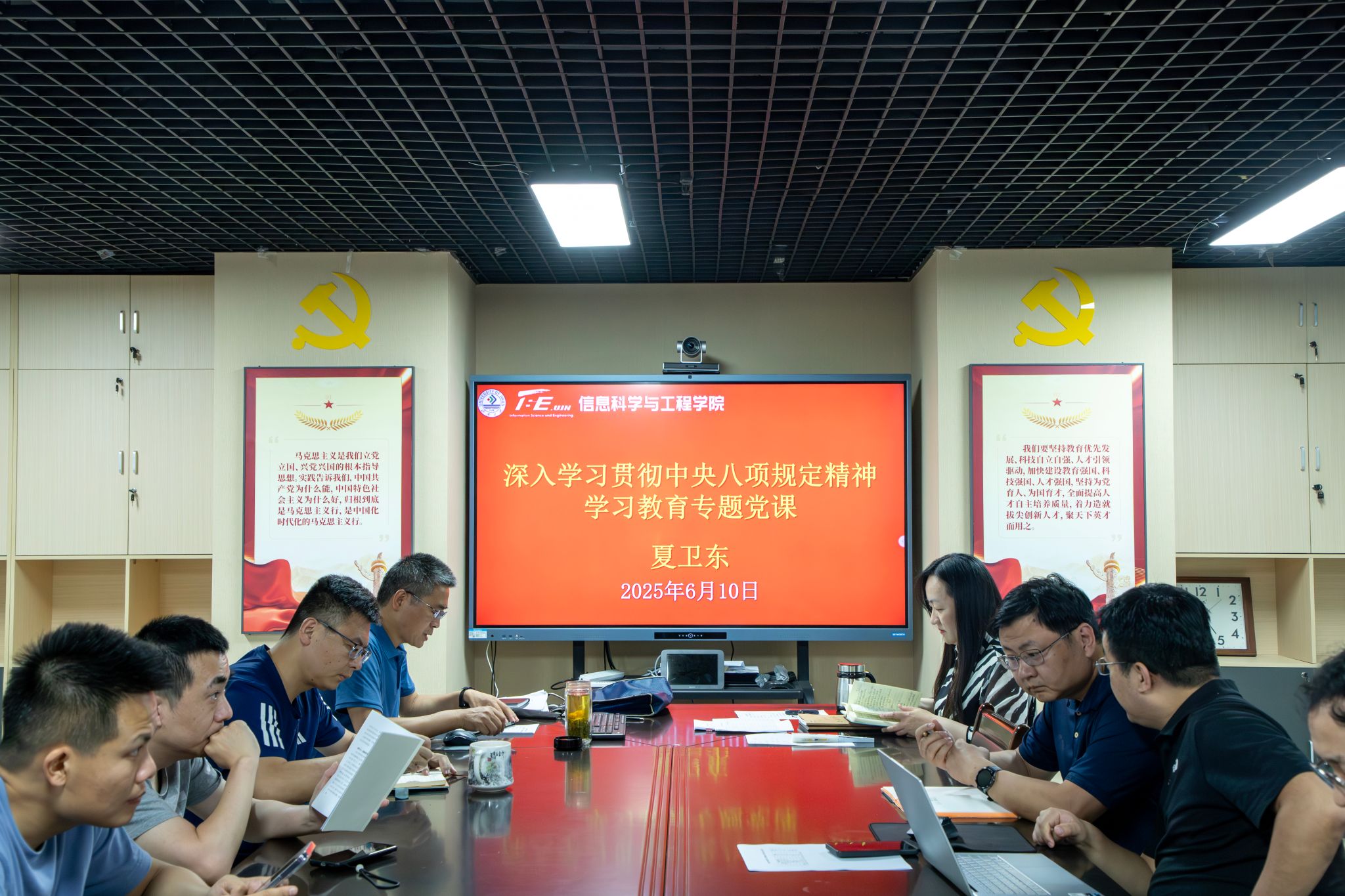 会议第二阶段,夏卫东以“深入贯彻中央八项规定精神学习教育 持之以恒推进作风建设”为题,讲授学习教育专题党课。党课内容围绕深入贯彻中央八项规定精神学习教育,结合中央八项规定具体内容及其提出背景,分别从深刻领会中央八项规定精神的内涵与时代意义,贯彻中央八项规定精神的重点要求,学习教育对党员干部的具体要求等三个方面进行了详细阐述分析。夏卫东强调,中央八项规定及其实施细则精神是长期有效的铁规矩,必须常抓不懈、久久为功。全体党员要以此次学习教育为契机,把作风建设成果转化为推动学院高质量发展的强大动力,以优异成绩推动学校“冲一流、进百强”奋斗目标顺利实现。