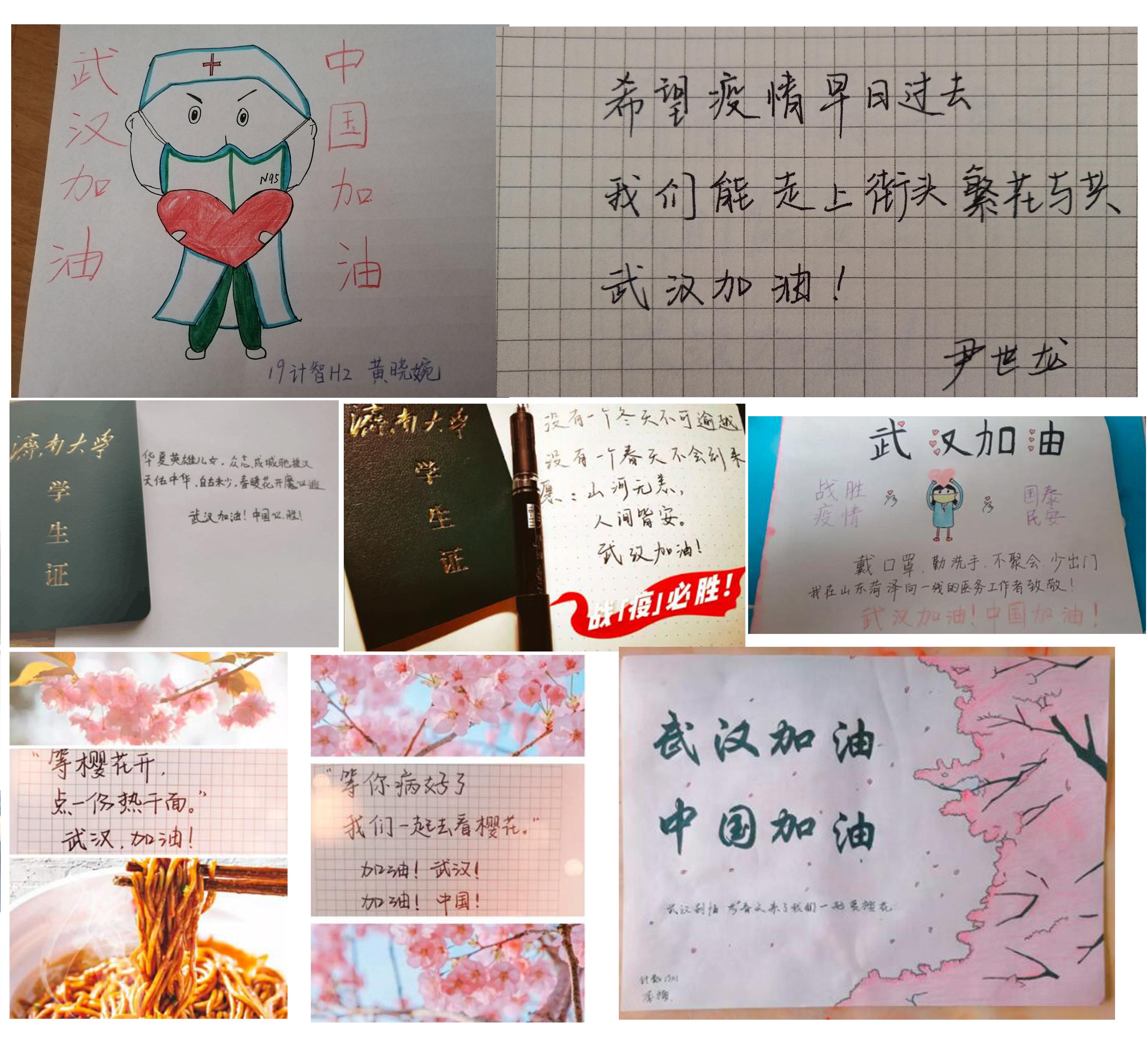 1996级校友,济南大学音乐学院教授唐磊以“艺”抗“疫”,创作了抗击疫情歌曲《满城樱花》,受到了大家的广泛关注和称赞;2001级校友,酷客多小程序CEO郝宪玮助力政府抗“疫”,紧急研发出“疫情防控小程序”,方便各级政府监控和监管疫情状况,并向有需要且注册地在湖北的企业和个体工商户免费提供小程序1套;2011级校友,创客贴CEO王宝臣在疫情期间,免费开放提供疫情海报素材、“战疫体”使用权限,免费设计所有疫情相关的物料需求以及专享印刷折扣;2011级校友,淄博市临淄区委督查室副科长毕玉良冲锋在前,以身作则,坚守在疫情防控第一线;2014级校友中国电信日照分公司东港党支部95后青年党员李明聪、2015级校友山东省滨州市阳信县选调村官韩坤、2015级校友山东省济宁市泗水县选调村官张毅松等人作为党员志愿者,活跃在抗击疫情一线,用实际行动诠释“不忘初心、牢记使命”的铿锵誓言。