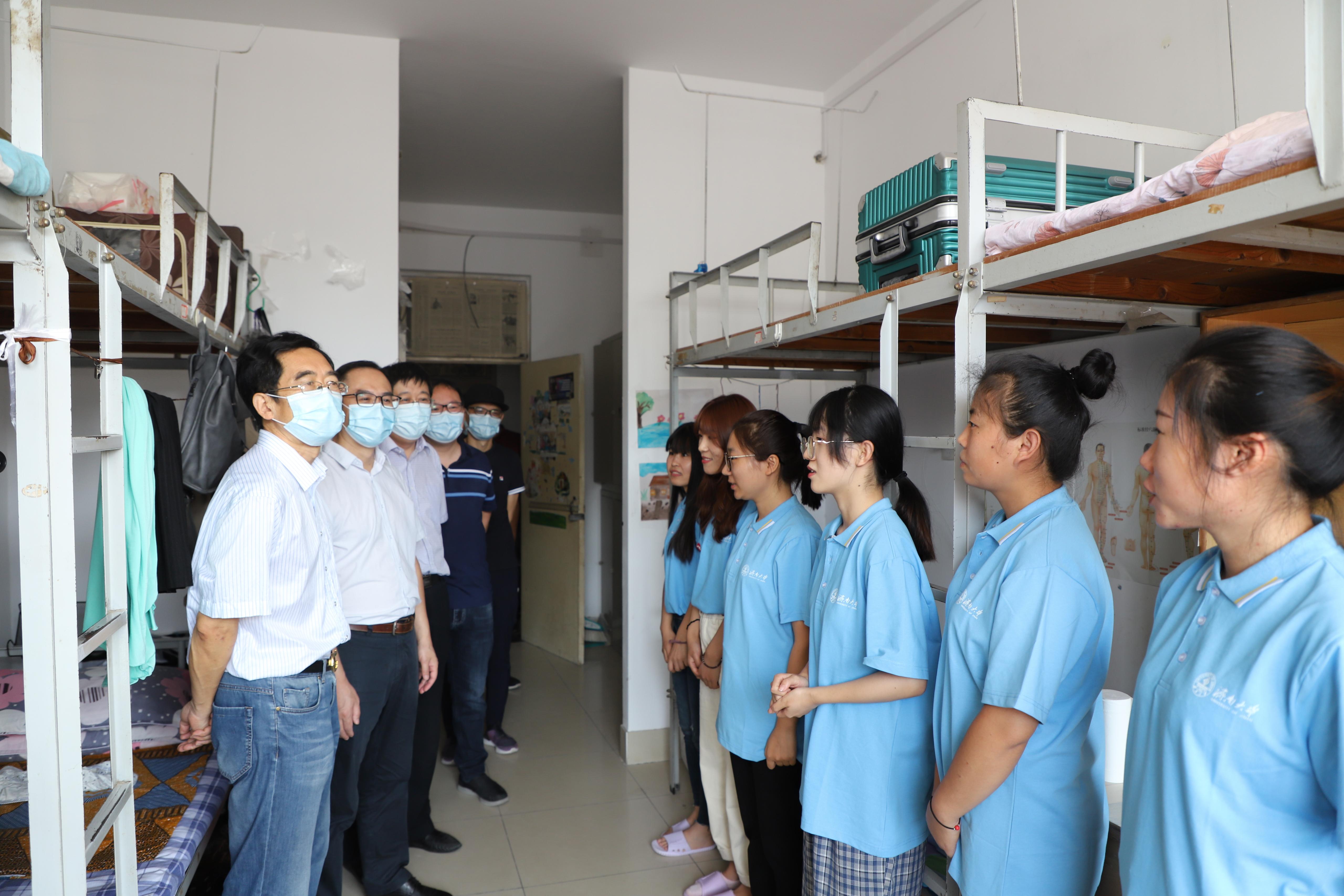 领导老师对新同学的关怀,学院党委书记邱鲁军,院长陈贞翔,党委副书记、副院长刘颖超,副院长荆山,副院长韩士元以及学生工作办公室相关老师深入新生宿舍,走访慰问2020级新生。