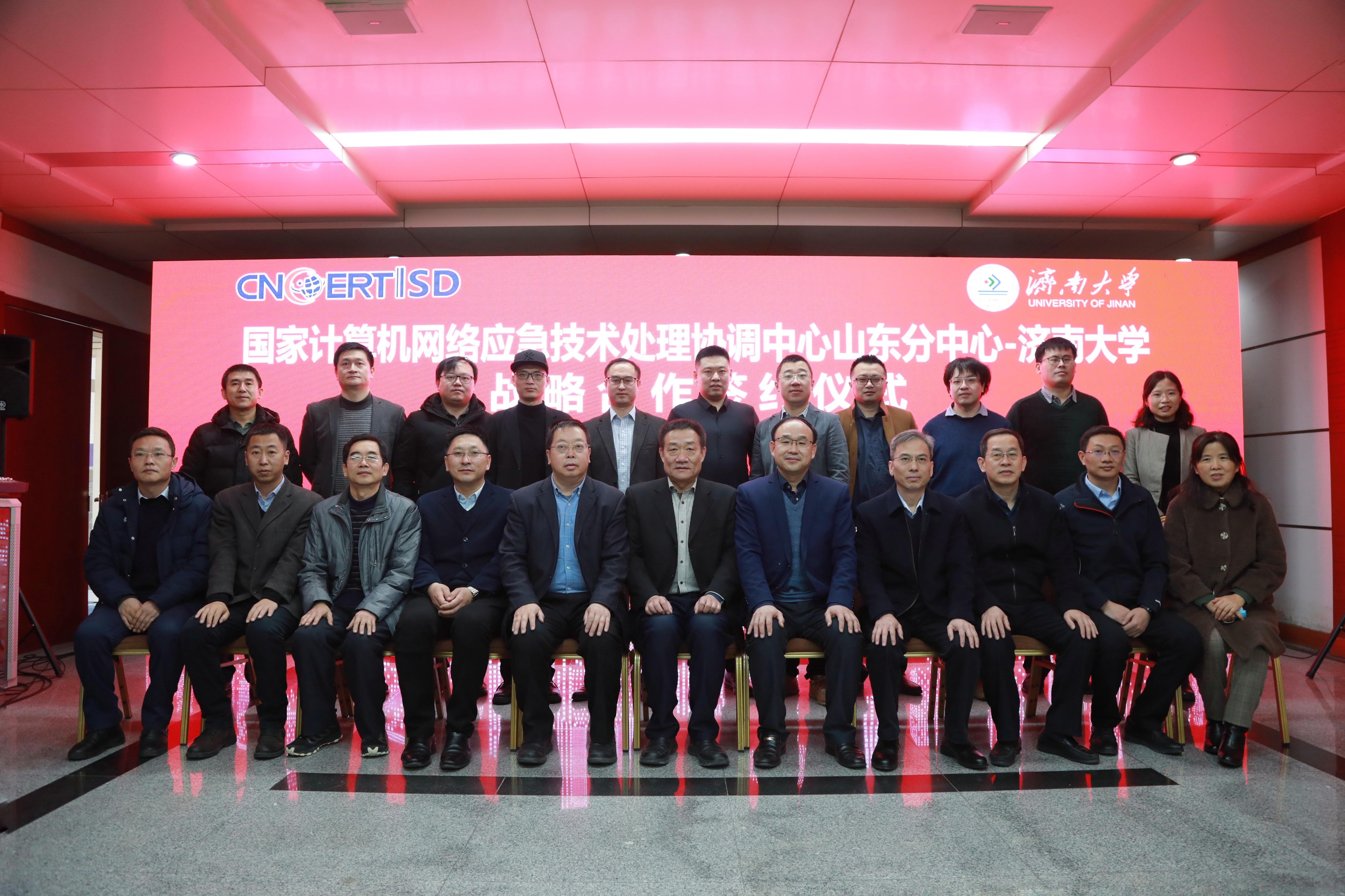 12月30日,济南大学与国家计算机网络应急技术处理协调中心山东分中心签署战略合作协议。国家计算机网络应急技术处理协调中心山东分中心党委书记、主任安茂波,济南大学副校长刘宗明,山东省网络环境智能计算技术重点实验室主任杨波,山东分中心党委副书记、副主任刘善武,副主任、总工程师赵煜及相关部门负责人,济南大学合作发展处、信息管理处、高层次人才工作办公室和电竞投注平台
