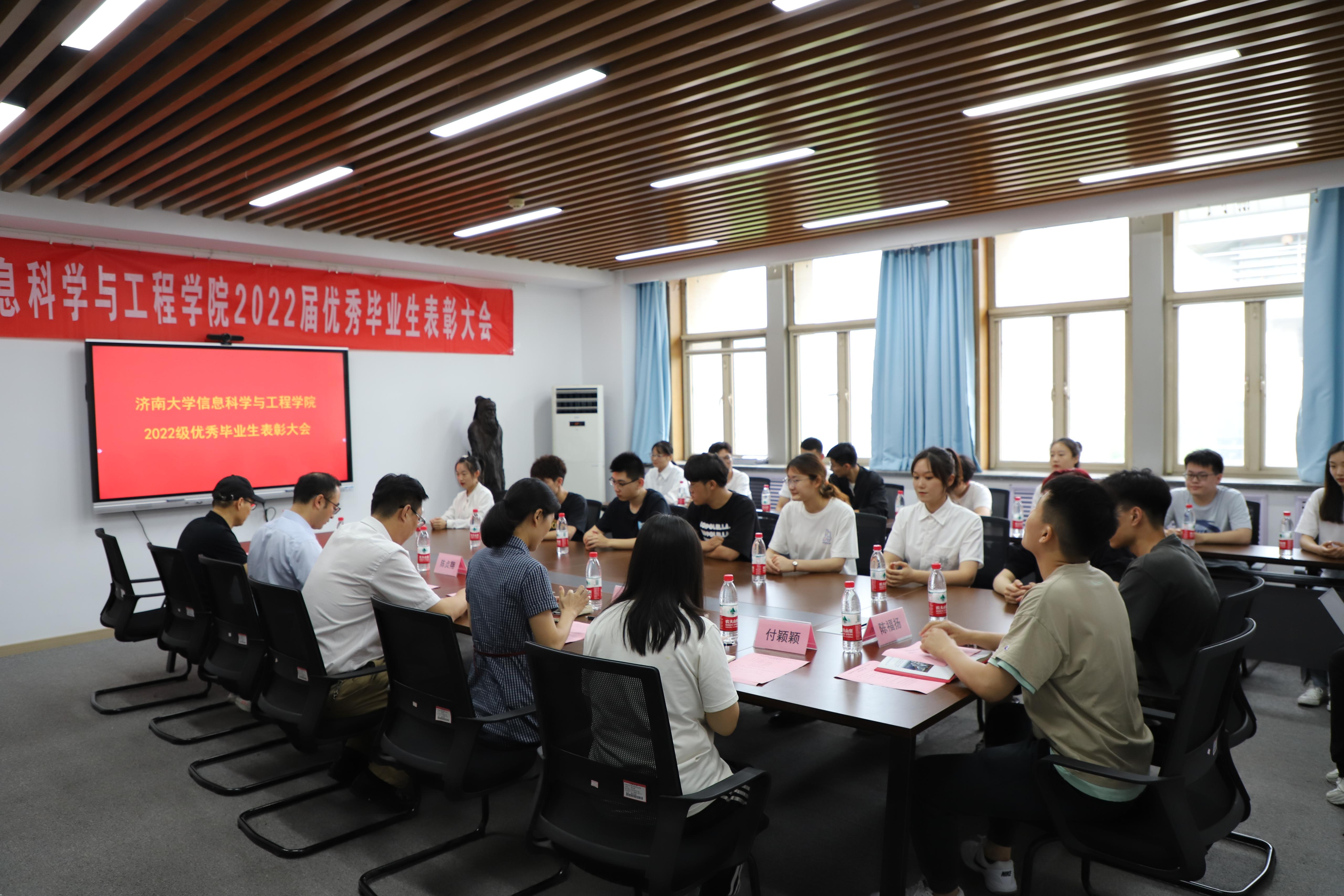 召开2022届优秀毕业生表彰大会。学院党委书记李超、院长陈贞翔、副院长荆山、全体学工人员以及2022届优秀毕业生代表参加会议。会议由党委副书记、副院长董晓慧主持会议。