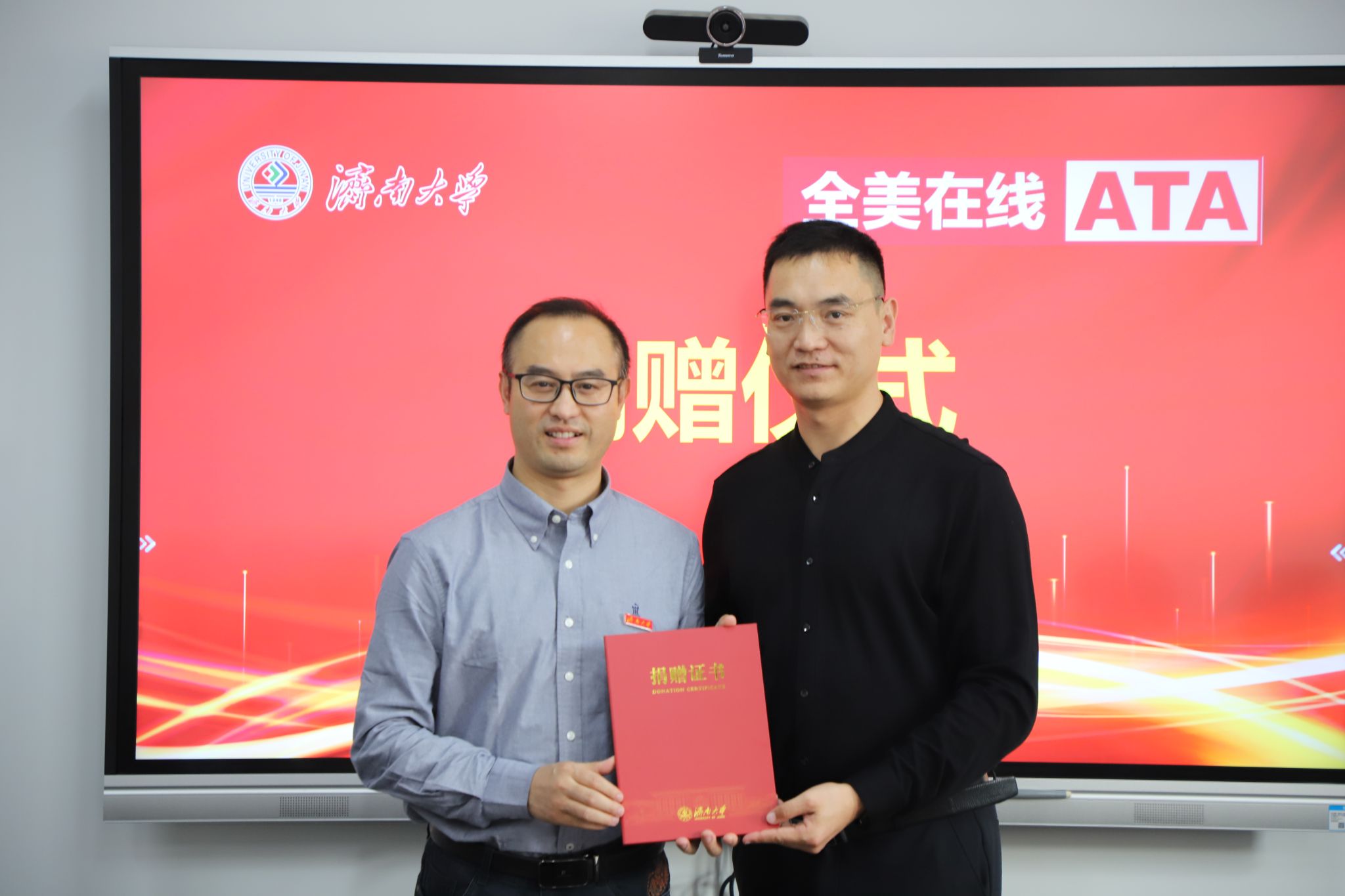 —全美在线(北京)科技股份有限公司捐赠仪式”在第十二教学楼704会议室举行。学校党委常委、副校长黄加栋,全美在线(北京)科技股份有限公司大区经理何青刚,济南大学合作发展处处长刘振,电竞投注平台