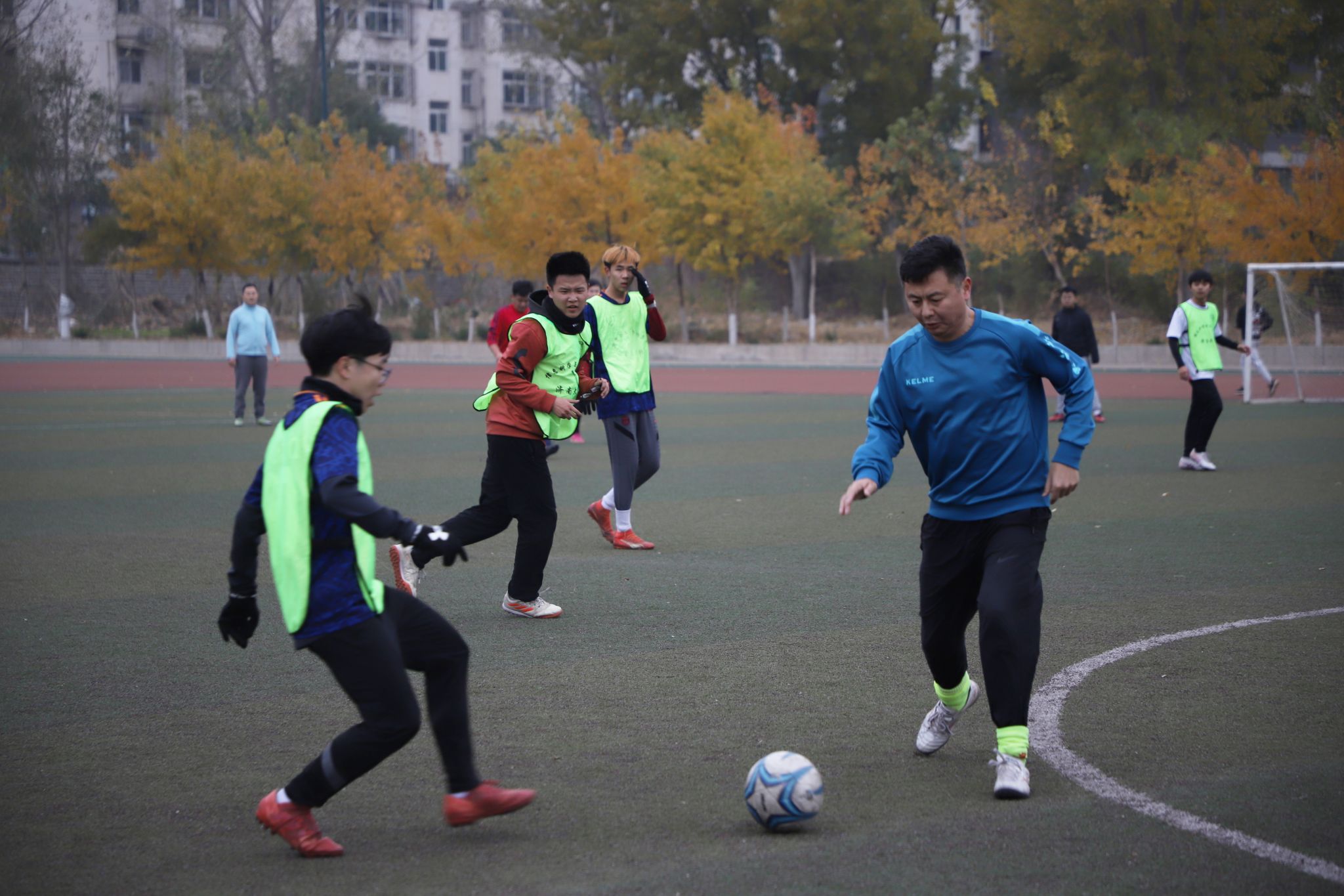 在南苑足球场举办了师生足球友谊赛。