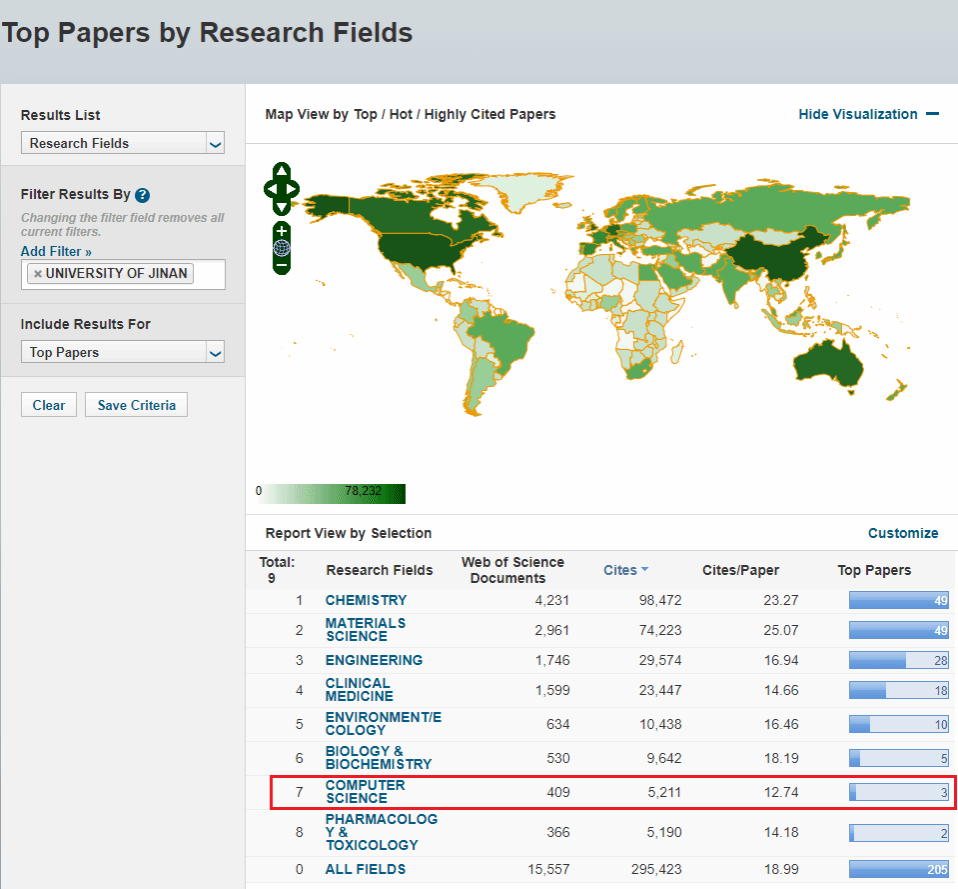 计算机科学(Computer Science)学科首次进入ESI全球前1%。