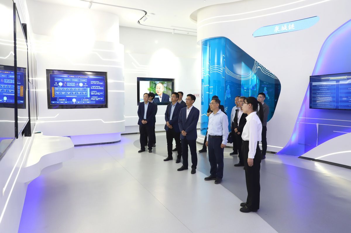 山大地纬软件股份有限公司名誉董事长、首席科学家李庆忠对李强一行的到来表示热烈欢迎,邀请校方领导参观电竞投注平台-电竞博彩平台展厅,并介绍了公司近年来以“AI+区块链”为核心驱动数据要素赋能政务服务、数字医疗健康、智能用电等领域发展情况。