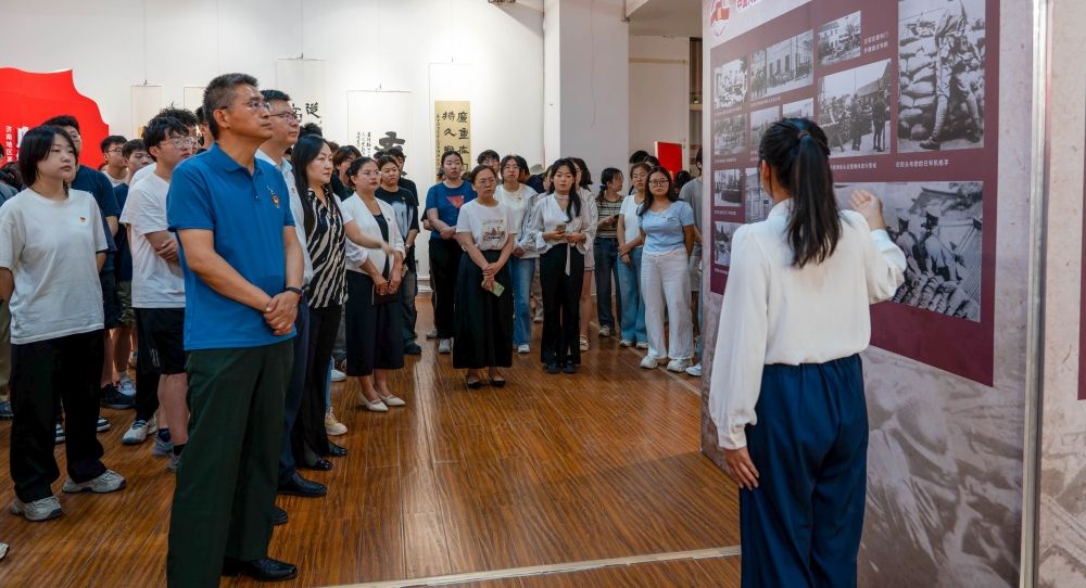 师生党员前往学校舜道艺术馆开展主题党日活动,学院党委班子成员、组织员、全体辅导员、2025年上半年新发展和转正的学生党员以及毕业生党员代表共同参观了“济南惨案档案图片展”主题展览,感悟红色文化,汲取奋进力量。