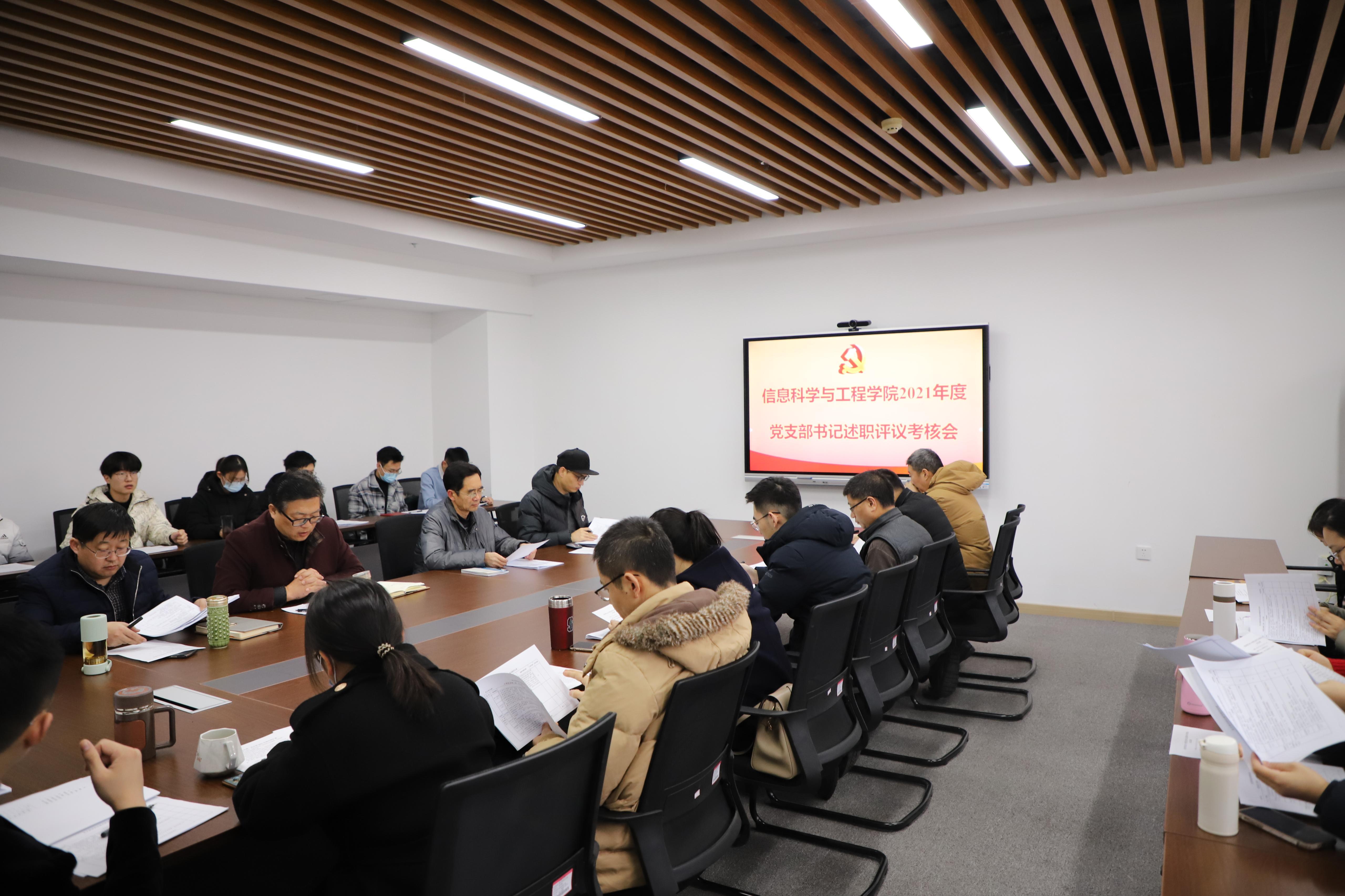 党委召开2021年度党支部书记履行全面从严治党责任和抓基层党建述职评议考核会,学院领导班子成员、各党支部书记、师生党员代表参加会议,会议由学院正处级组织员季竹君主持。