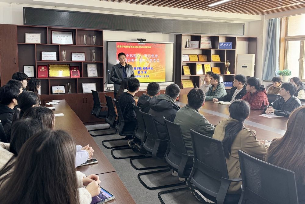 党委书记夏卫东以《不忘初心,牢记使命做合格的中国共产党党员》为题,为学院2024年下半年即将转正的44名预备党员讲授专题党课,组织员、学生党支部支委参加了此次培训。