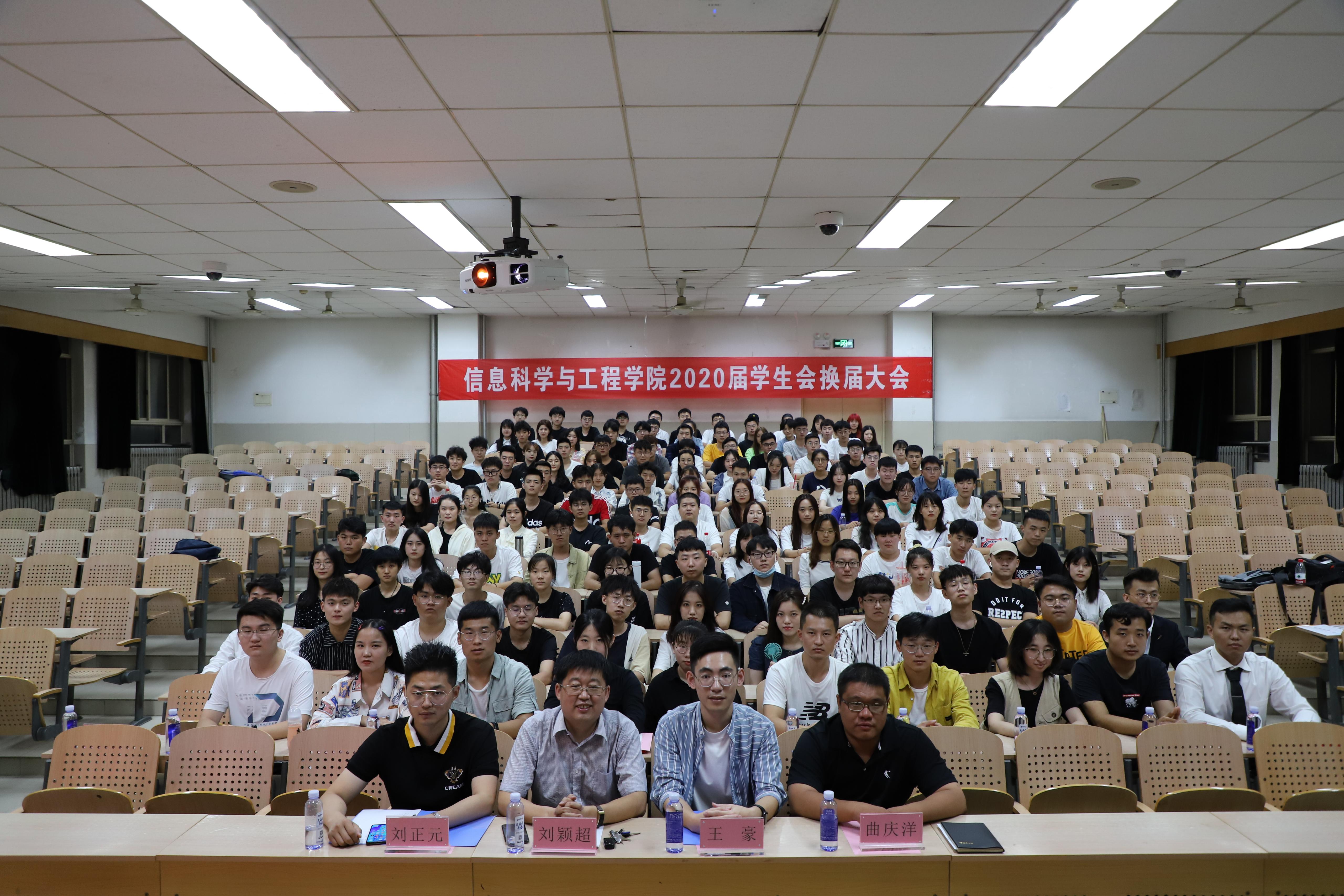 2019届学生会“优秀学生干部”的决定》,刘颖超书记为优秀学生干部代表颁发荣誉证书。刘正元老师宣读信息学院2020届学生会成员名单,2020届学生会主席团成员吕嘉洛代表2020届学生会作表态发言。
