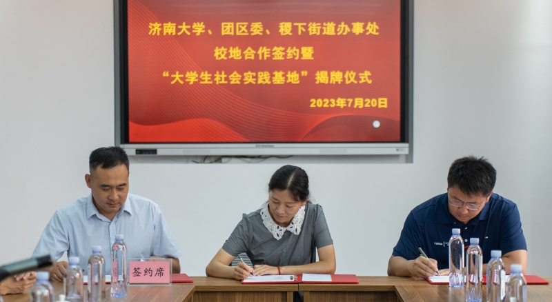 相关负责人,团区委、稷下街道办事处相关工作人员,学院学生工作人员以及学院暑期“三下乡”社会实践团队成员等参加活动。签约仪式由张敏主持。