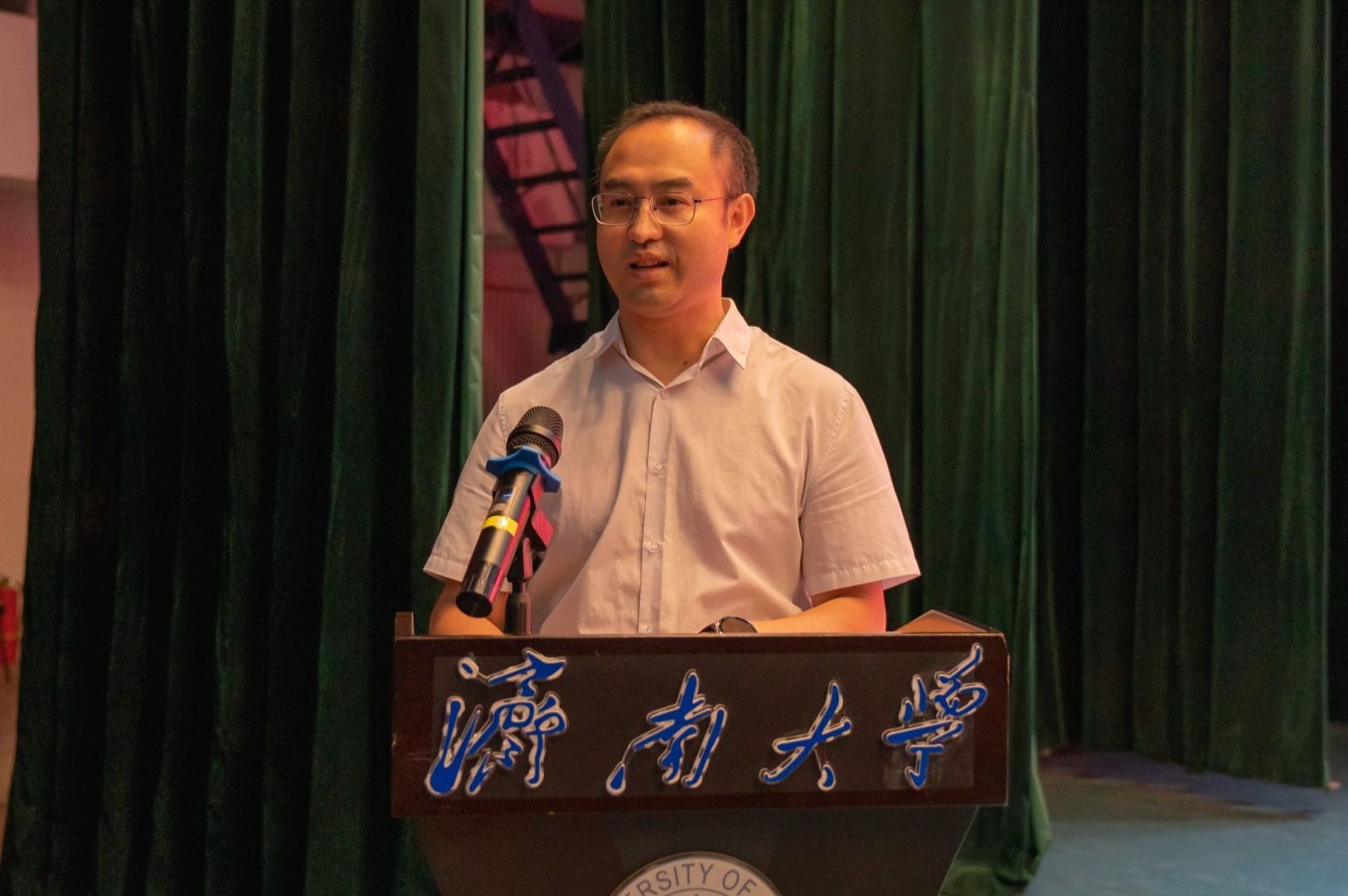 新生代表刘星雨在发言中分享了奋战高考的辛勤和圆梦济大的喜悦,号召全体新生脚踏实地,从第一步做起,意气风发地开始大学生活,创造属于自己的明媚未来。