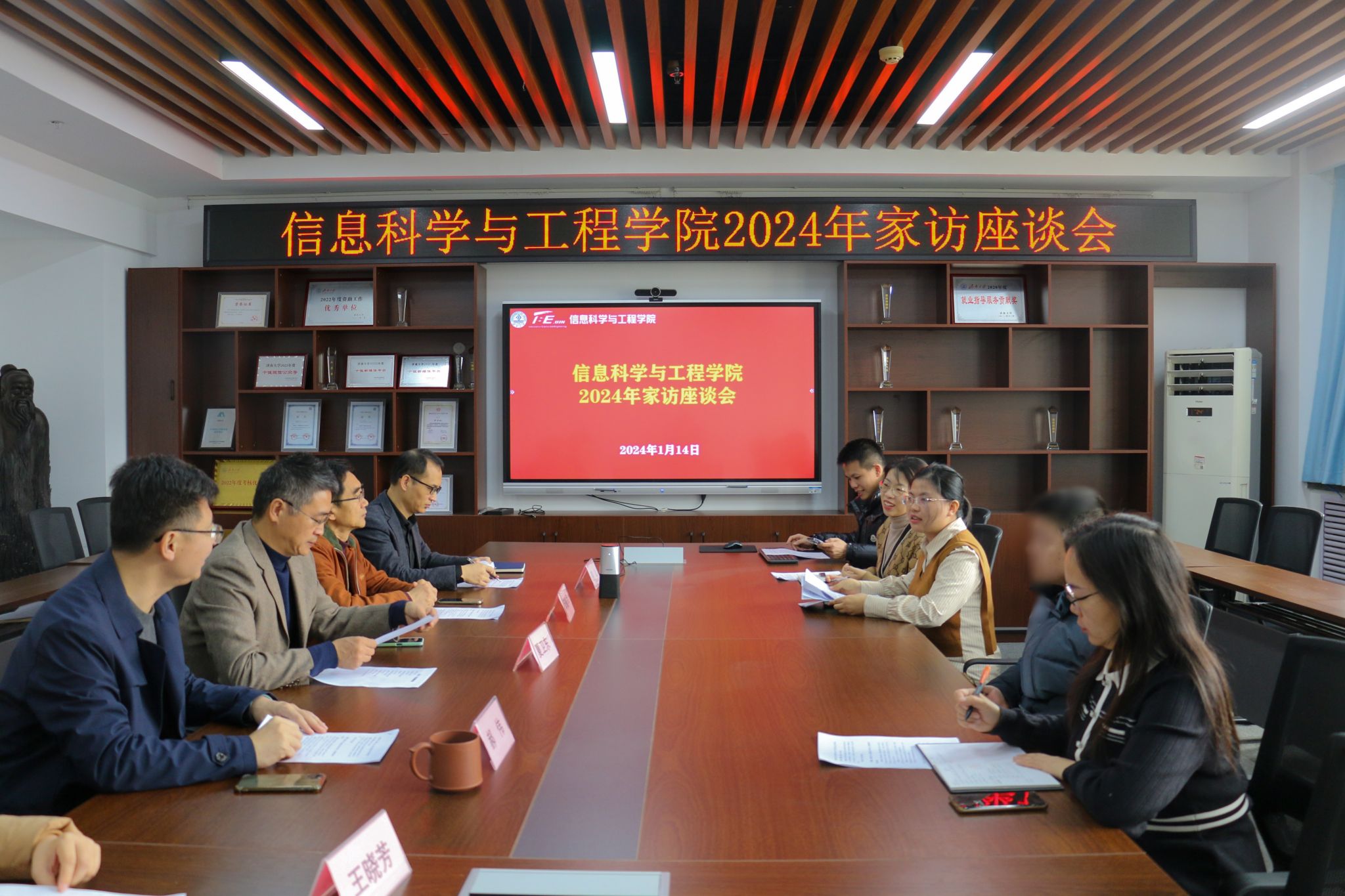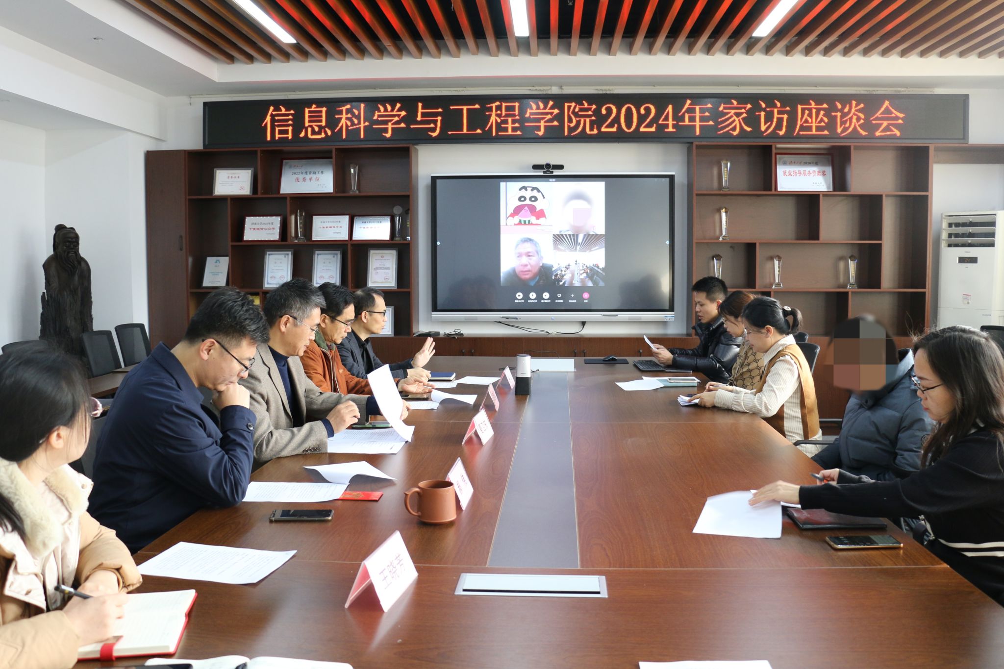在12教704召开了2024年寒假家访座谈会,通过腾讯会议、视频电话等方式与多名省外重点资助学生及家长进行线上交流,“一对一、面对面、心连心”,为受助学生家庭送去温暖和祝福,让爱充满“云端”。学院党政领导班子成员、全体学工人员、班主任代表以及部分学生及家长代表参与此次会议,会议由学院党委副书记、副院长郝伟主持。
