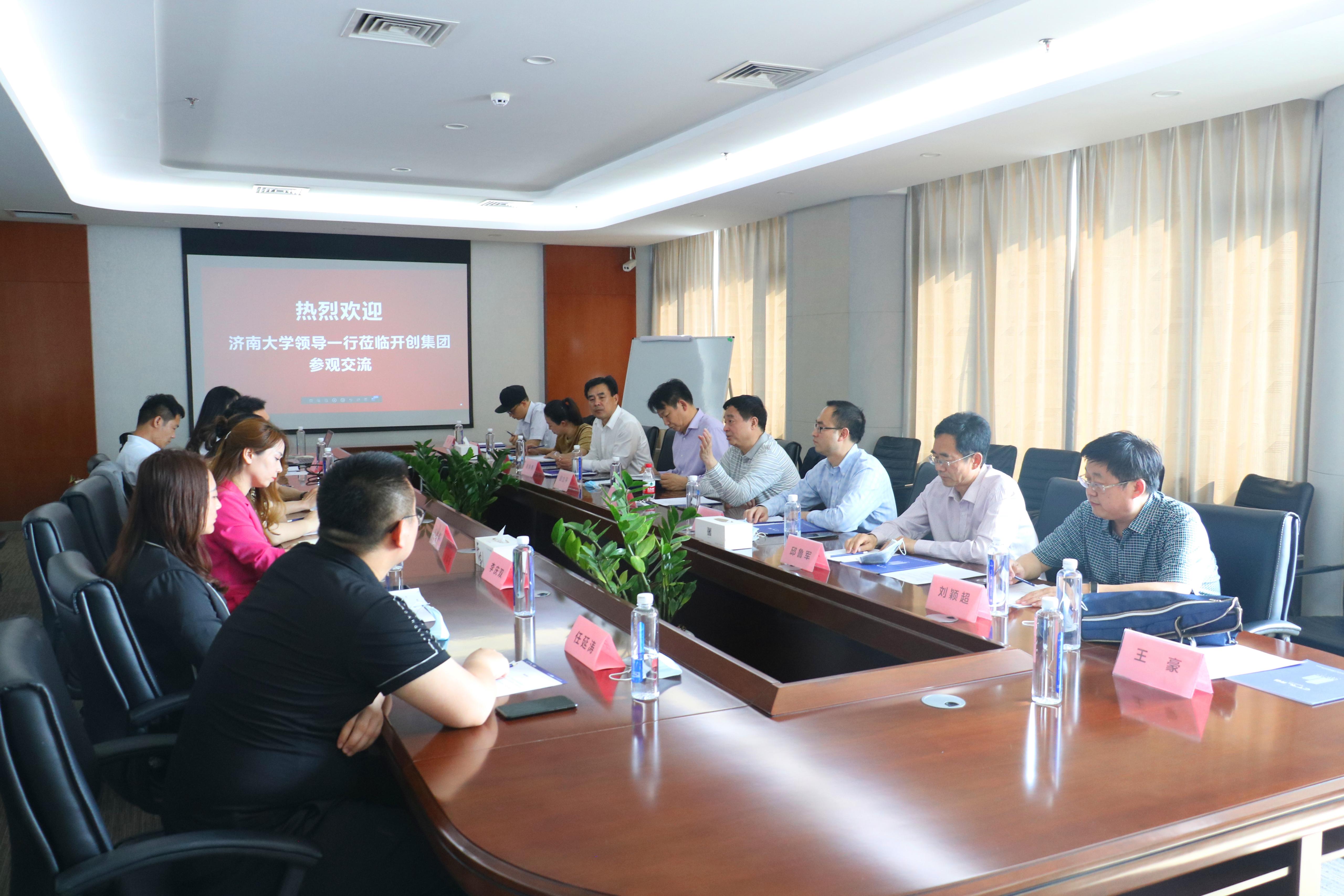 洽谈会上,刘胜楠总裁在致辞中对济南大学一行的到访表示热烈欢迎。她简要介绍了山东开创集团的发展历史、核心优势、服务团队、发展规划以及集团的运营情况,高度评价了济南大学在计算机、大数据等相关学科领域深厚的研究基础与先进成果,希望以此次洽谈为契机,不断深化交流、务实合作,与学校建立长远的产教研合作关系,为本集团公司乃至行业的创新发展提供强大的人才支持。